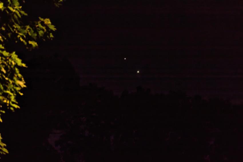 On Tuesday morning, August 12, my brother Anthony and I got up at our own locations to observe the conjunction of Jupiter and Venus before dawn. His image with his digital camera is below. While he was viewing from his location I took out my 5.1″ Short Tube Newtonian reflector to see if I could fit both planets in the same field of view. Seeing both planets in the same field of view was a special treat for me and I viewed it for about ten minutes through my telescope. I also used a ruler as a primitive quadrant, and at 5:15 a.m. the conjunction was about 27.5 degrees above the horizon. Unfortunately, this wasn’t high enough for my friend Rose to see it from her location although she tried her best to see it. But all was not lost. She did see a nice Perseid meteor go across her sky. It turned out to be another great moment in astronomy for us.